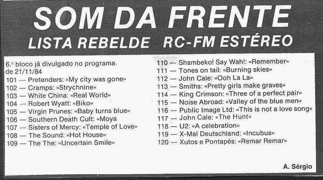 O Som da Frente, uma emissão de António Sérgio para a Rádio Comercial (23 Agosto 1988)